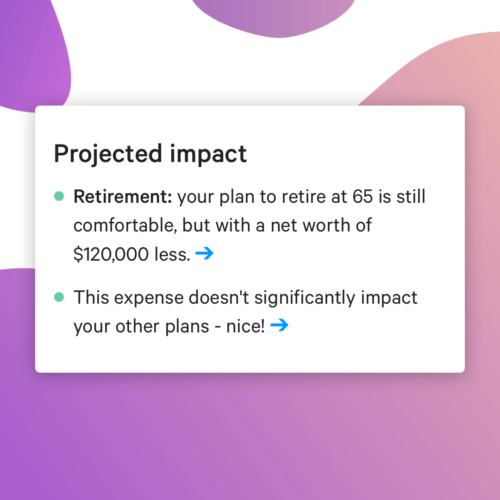 Whether it’s renovating your home, putting together your dream wedding, or buying a car, as of today, you can see how near-term, one-time expenses will factor into your long-term plans. You can explore different budgets and timelines to help you pick the plan that fits best. Our goal is to make sure you have every tool you need to financially curate your best life, and our future expense feature is our latest effort toward fulfilling that vision.