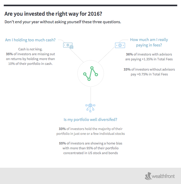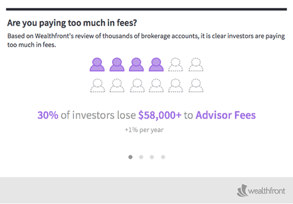 - 30% of investors pay more than 1% annually in advisory fees. This is more than four times what Wealthfront clients pay (not including our benefit of waiving the fee of $5,000 for each friend you invite).