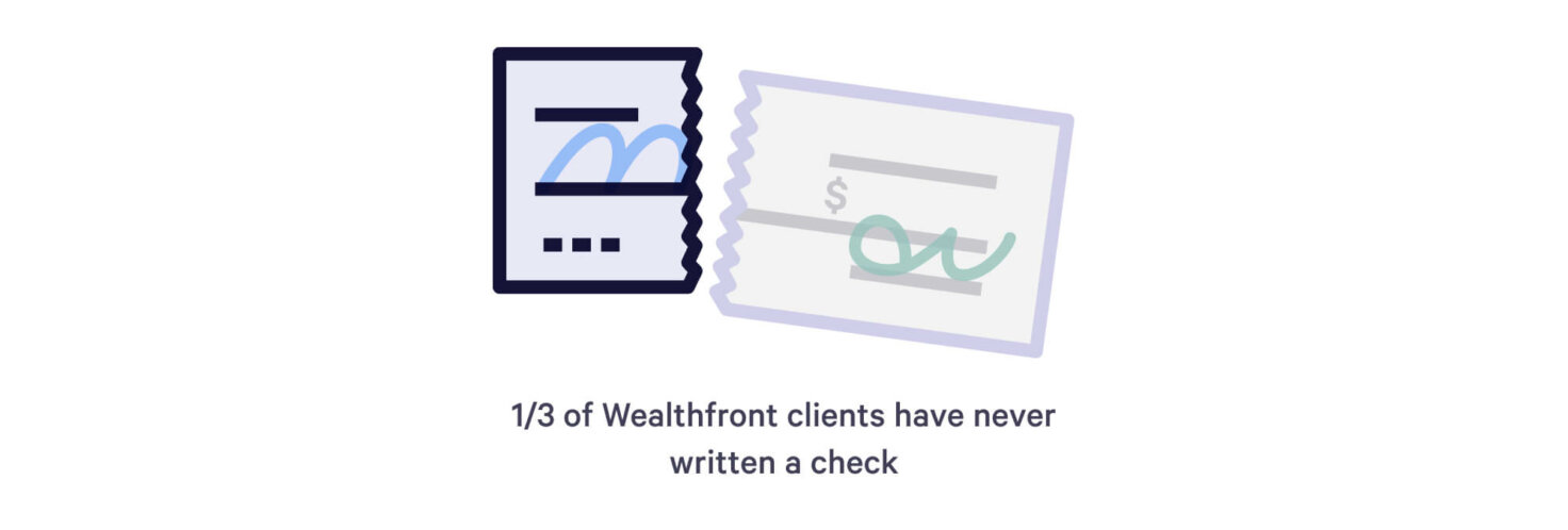 Checks are also becoming a thing of the past. We found that one-third of our clients have never written a check. This probably sounds crazy to baby boomers.