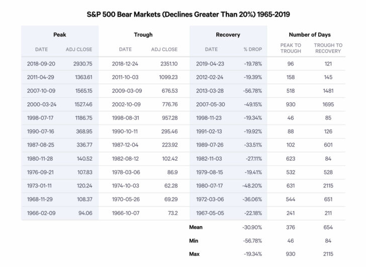 Because the market was on a tear, investors have been sensitive to any downward trends. So when the latest bear market — defined as a peak-to-trough decline of at least 20% — occurred last week, it sent shockwaves. The result has been fear and uncertainty, with many investors pulling the money out of the market or keeping their money in savings while they wait it out. But just how long should this last?